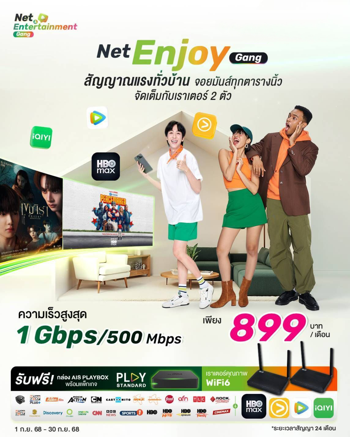 ความเร็ว 500 Mbps/500 Mbps (ดาวน์โหลด / อัปโหลด)